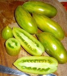 Variété tardive, développée par Tom Wagner (USA), à port déterminée. Fruits de 50 à 70g, allongée, vert zébrée jaune. Chair contenant peu de jus et peu de graines. Fruités et acidulés. Résiste bien au mildiou et production importante. Pouvant être cultivée en pot.